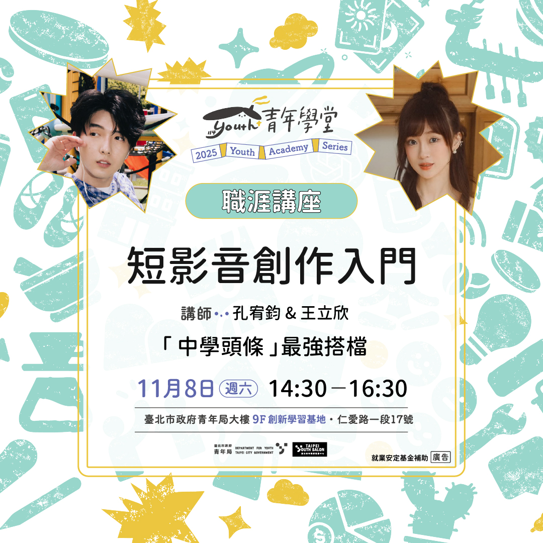 - 場次名稱:11/8 (六) 14:30-16:30 【實體講座】短影音創作入門