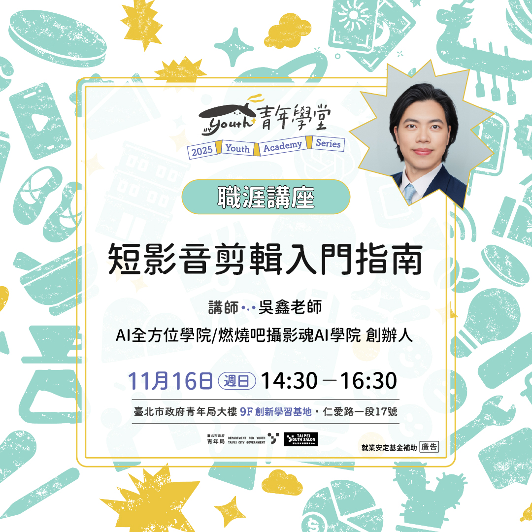 - 場次名稱:11/16 (日) 14:30-16:30 【實體講座】短影音剪輯入門指南